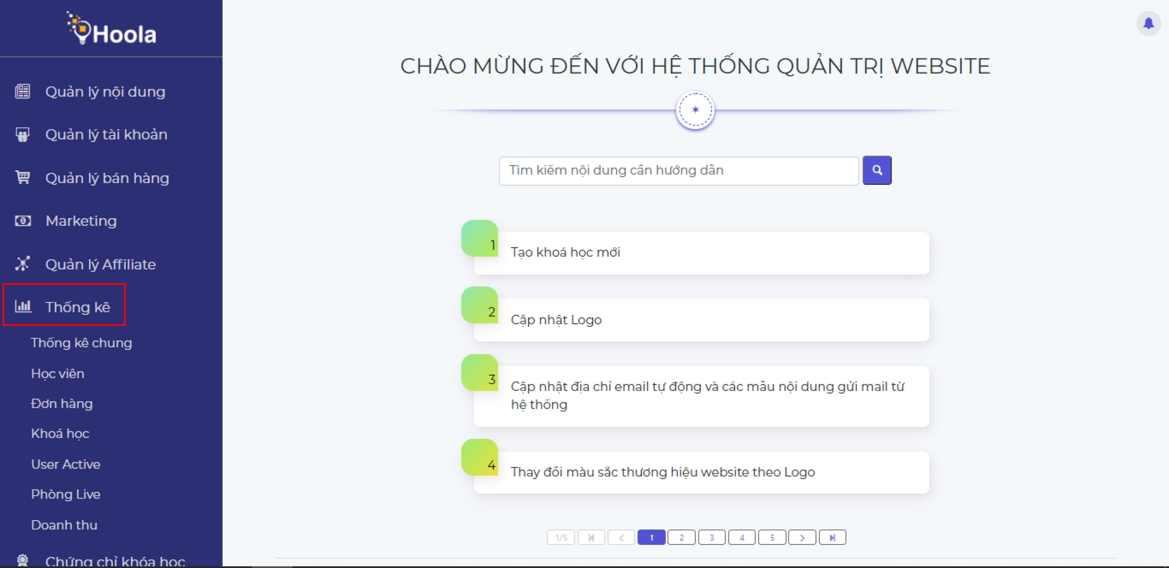 Trong phần này sẽ thông kê chi tiết các hành vi tương tác của tất cả các tài khoản từ nhân viên đến học viên một khi đã đăng ký trên website, cũng thống kê luôn gói dung lượng mà web đang dùng.