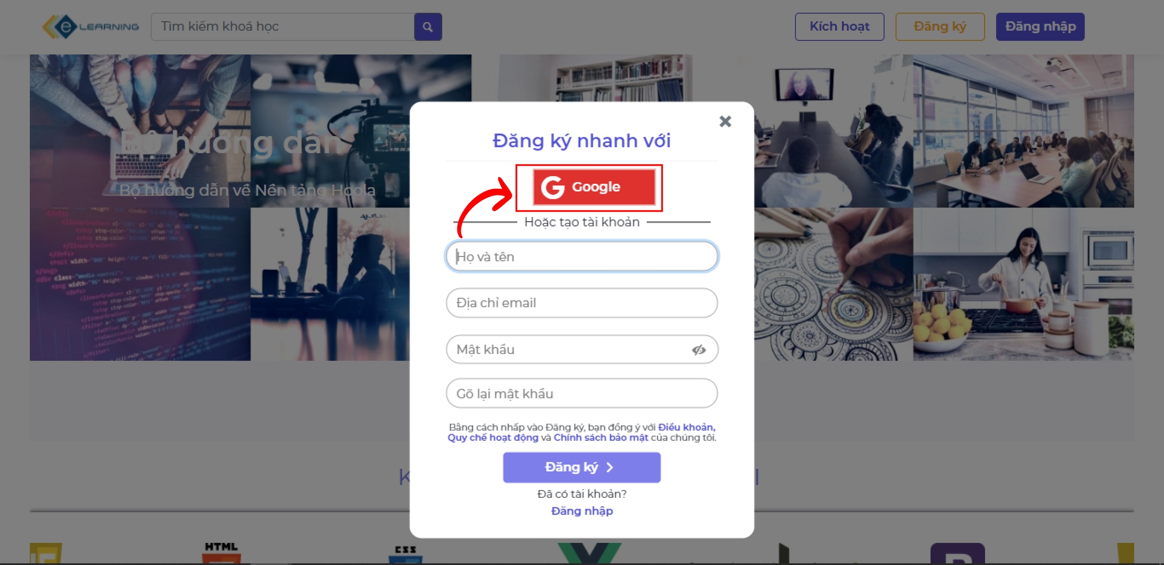 Cài đặt cho học viên đăng ký nhanh qua Google hoặc Facebook