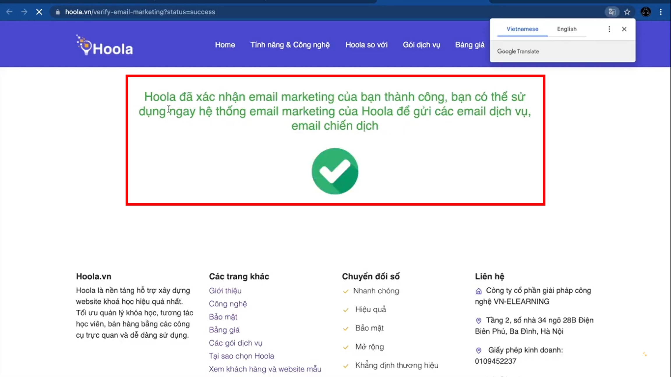 Quản trị viên chỉ cần click vào link gửi kèm trong Email là xác nhận thành công.