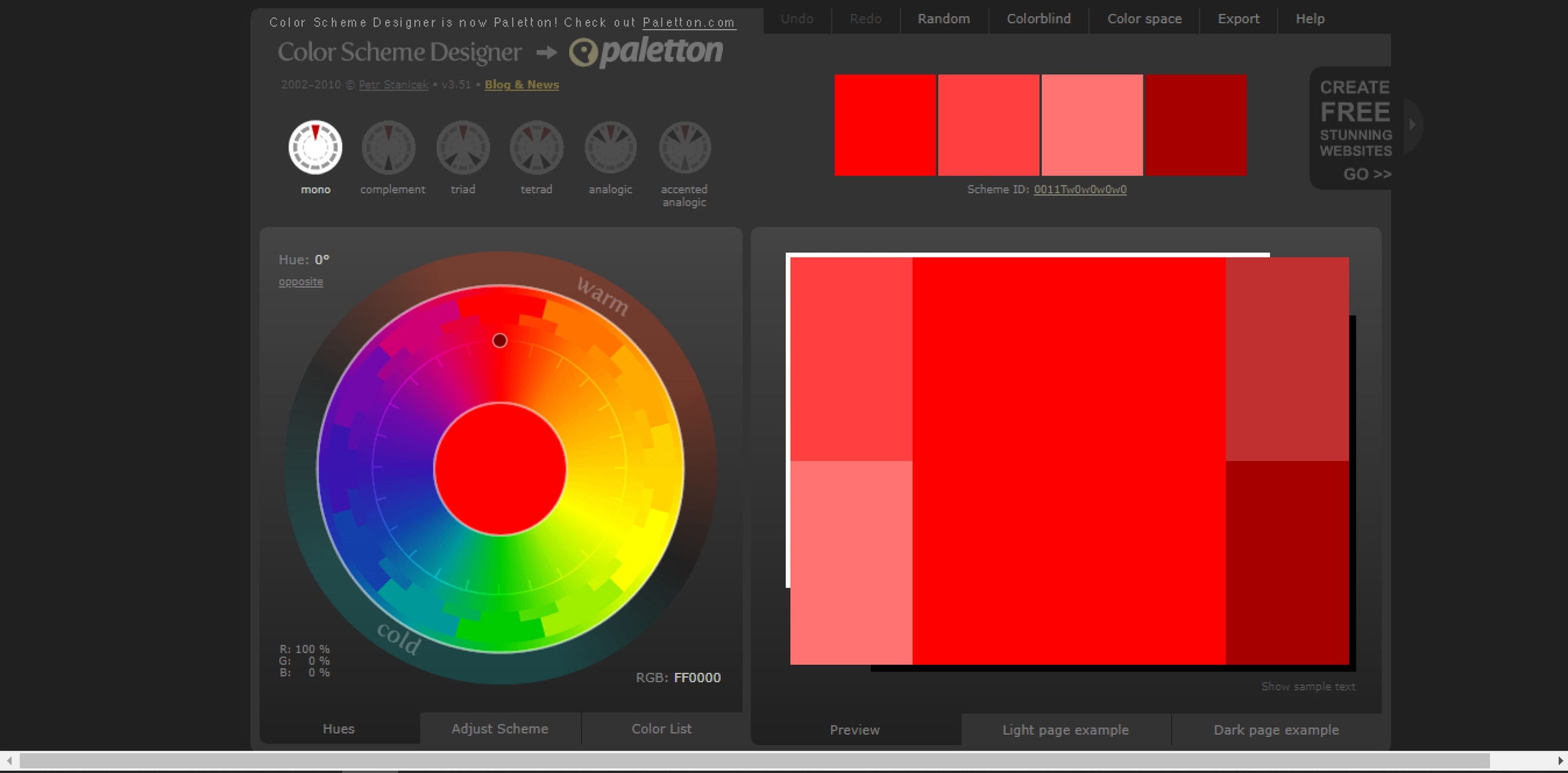 2. Trang web phối màu sắc: Color Scheme Designer