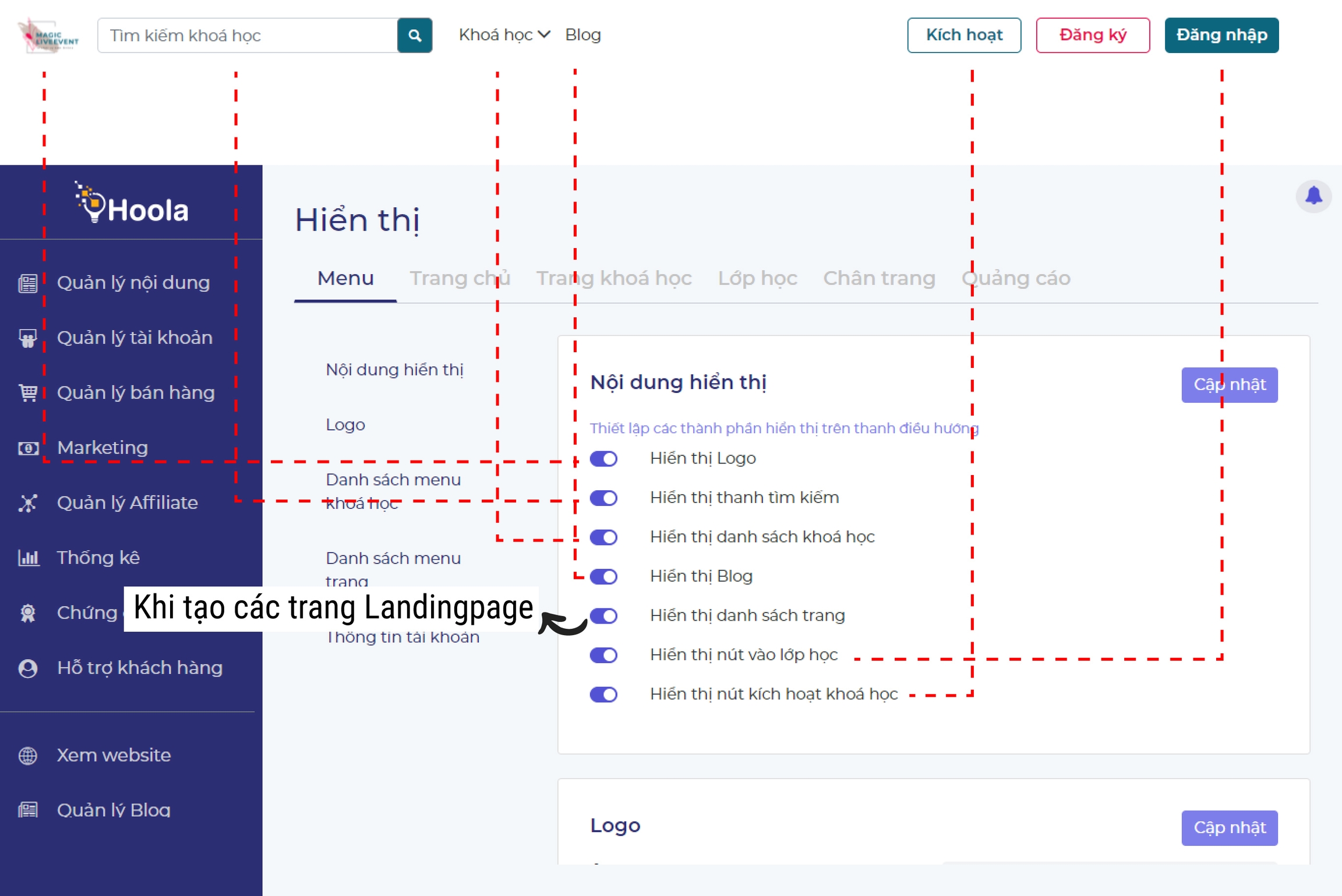 Liên kết giữa phần quản trị và hiển thị thực tế trên trang web