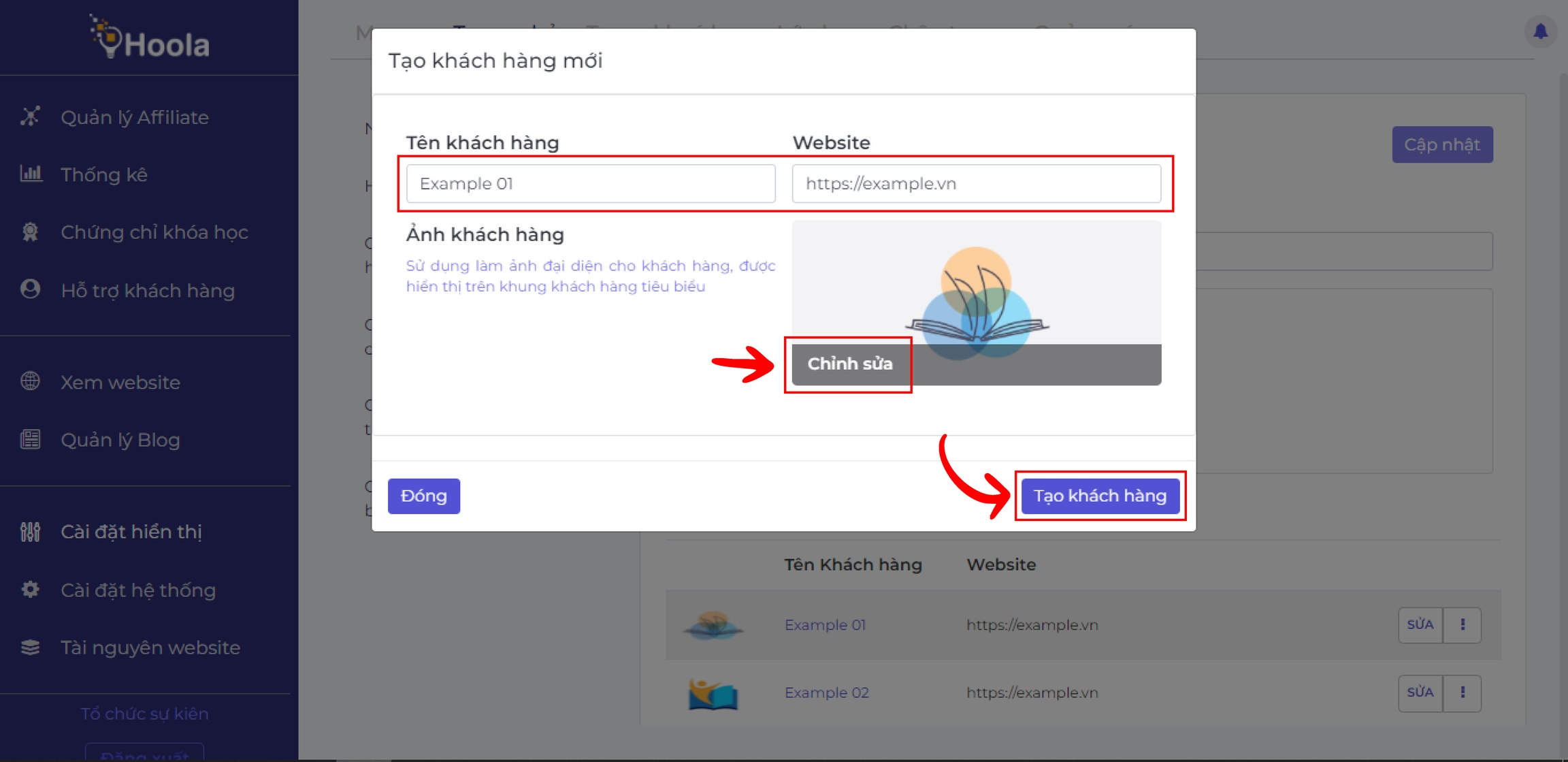Chỉnh sửa khách hàng tiêu biểu