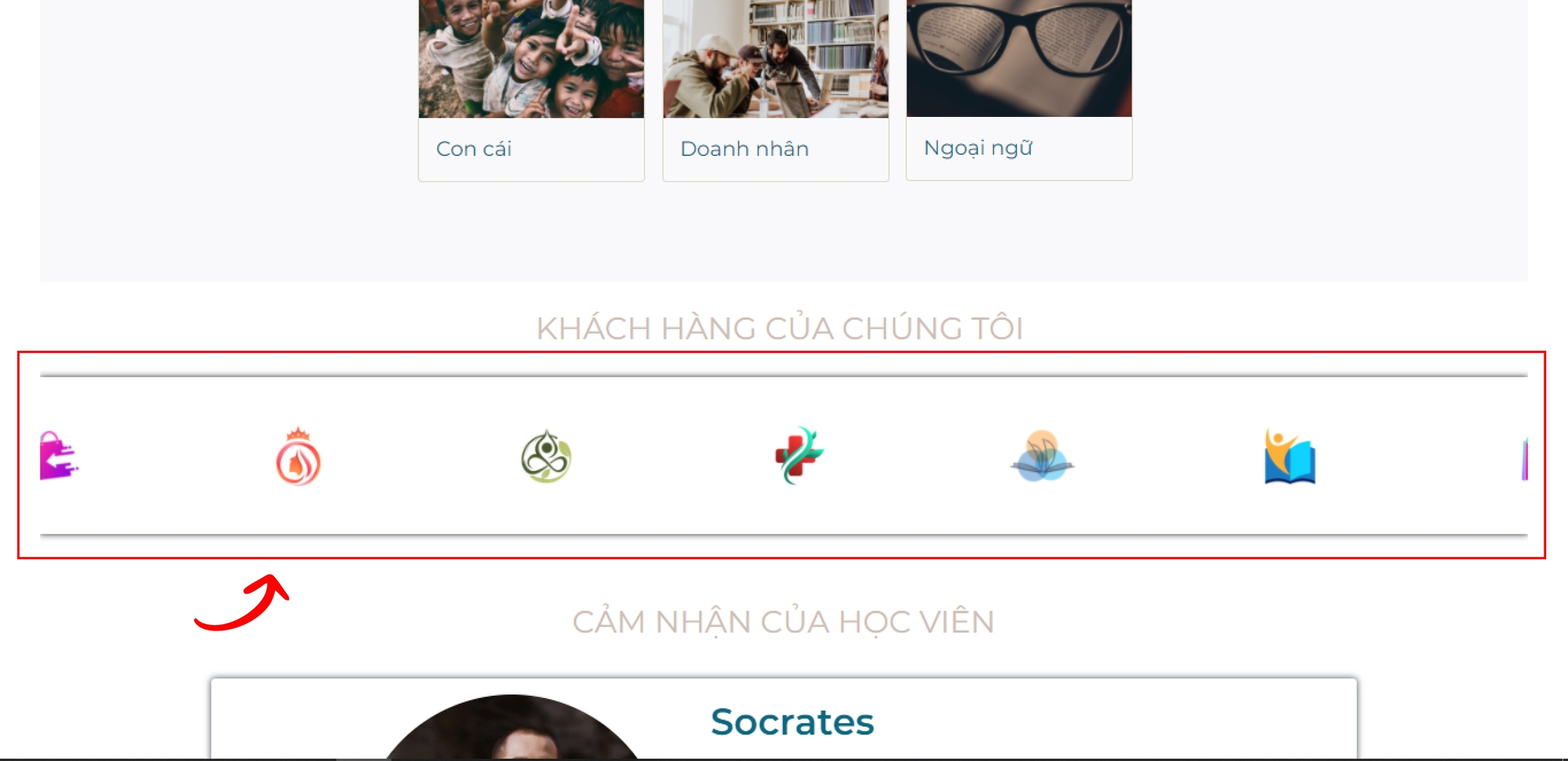 Chính là phần hiển thị logo (có thể kèm tên) của các đối tác - khách hàng lớn của web.
