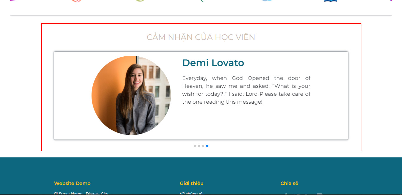 Chính là phần hiển thị Hình ảnh kèm các lời nhận xét, cảm nhận của học viên về các khóa học của website