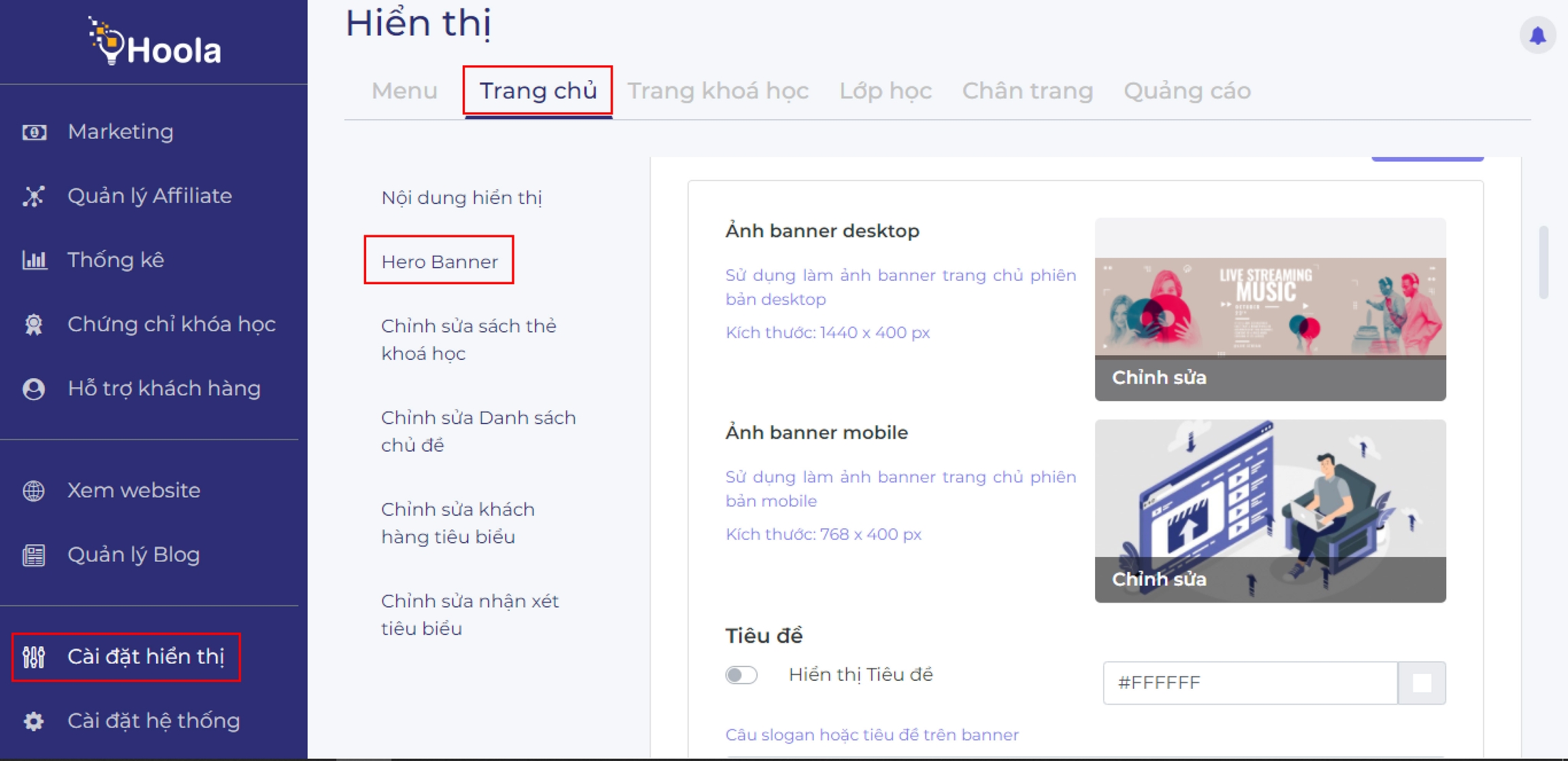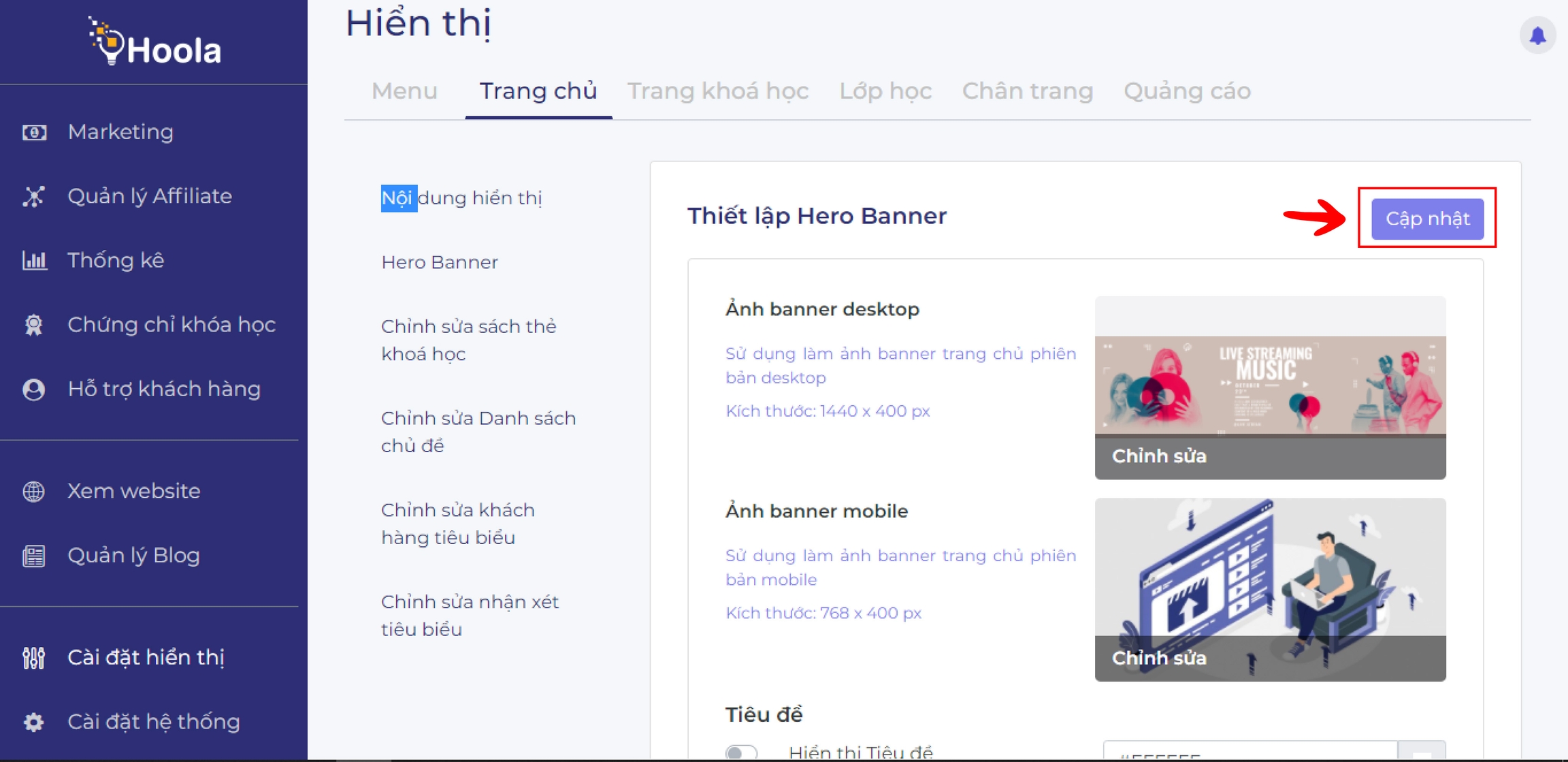 Vào Cài đặt hiện thịTrang chủHero banner