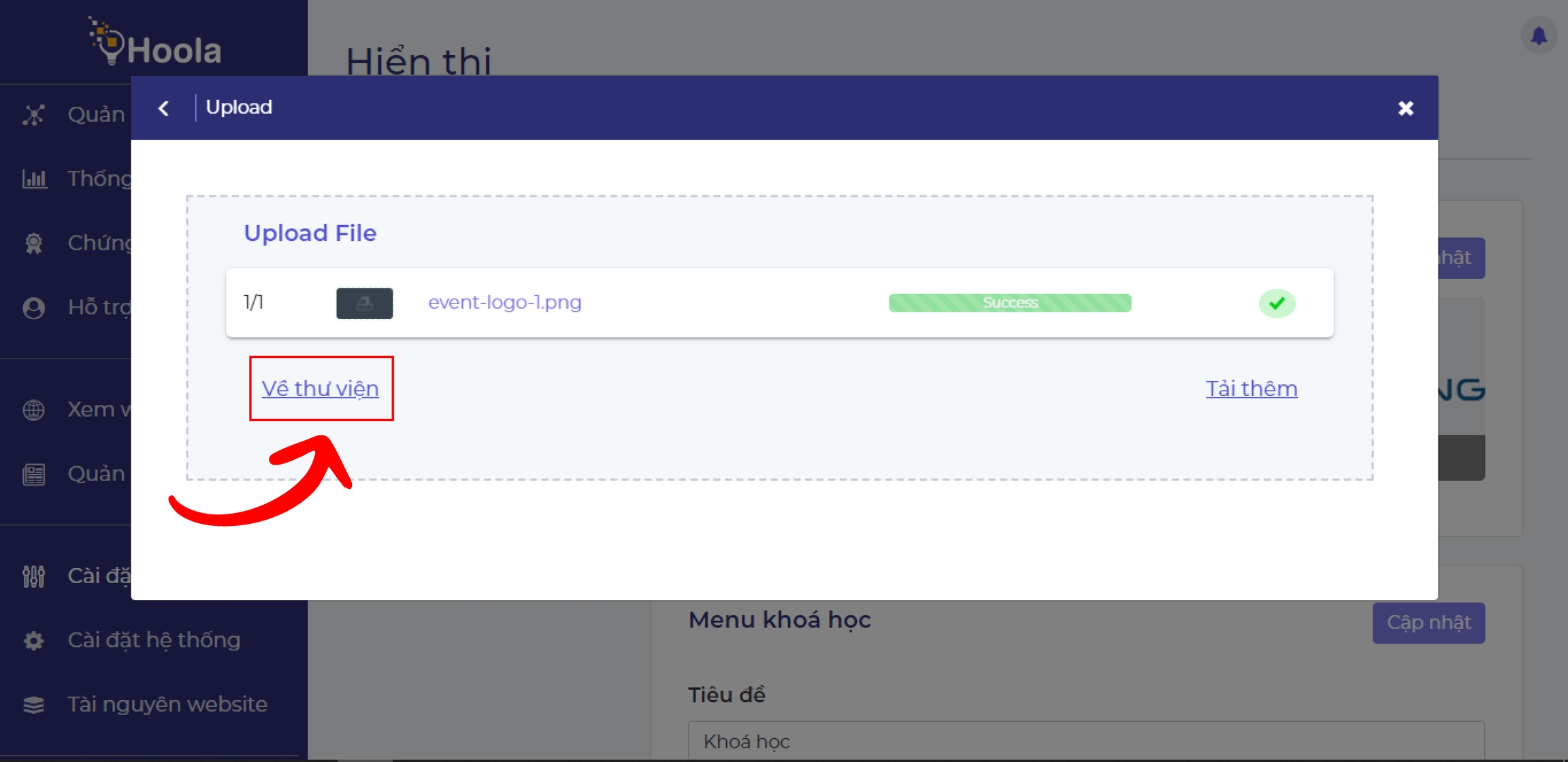 Sau khi tải lên thành công, nhấn Về thư viện để quay trở lại