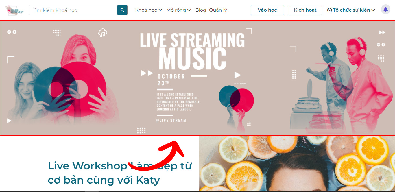 Ngoài ra, tại phần này có có một nội dung hiện thi text giới thiệu, quản trị có thể bật/tắt theo nhu cầu. Nếu ảnh banner mình đơn giản, hoặc quản trị chưa kịp thuê bên thiết kế thì có thể upload một ảnh background cảnh và cho hiển thị nội dung text. Còn nếu ảnh banner đã có thiết kế riêng thì có thể tắt tính năng này để tránh bị rối.