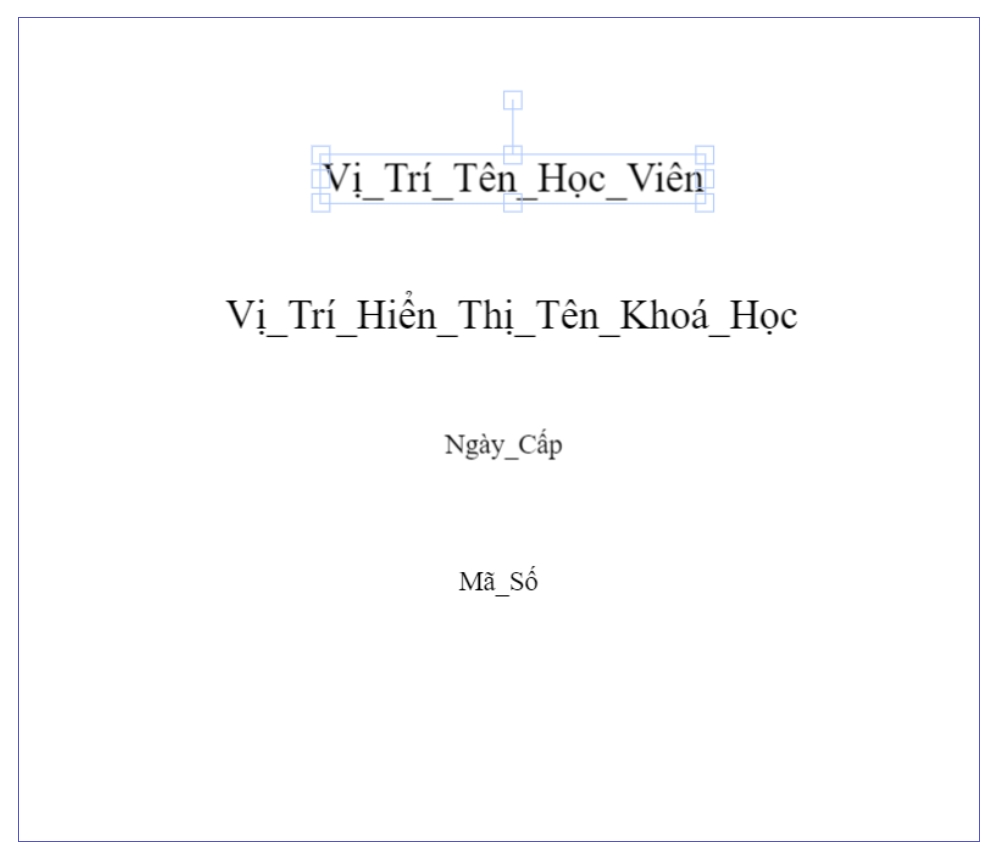 Khi nhấn vào từng thành phần trong mẫu chứng chỉ, ta có thể thay đổi vị trí, độ to, ... của thành phần đó.