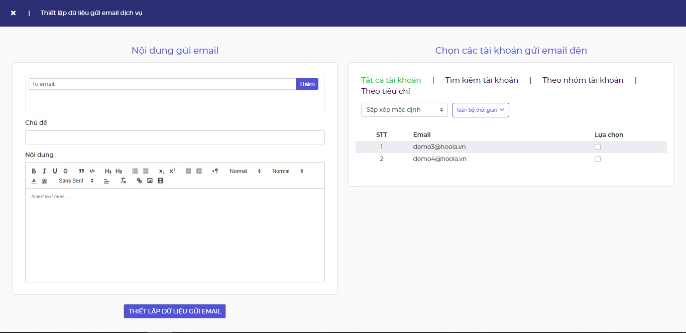 Sau khi đã cài đặt Email xong, quản trị viên sẽ quay lại và tiến hành gửi email.